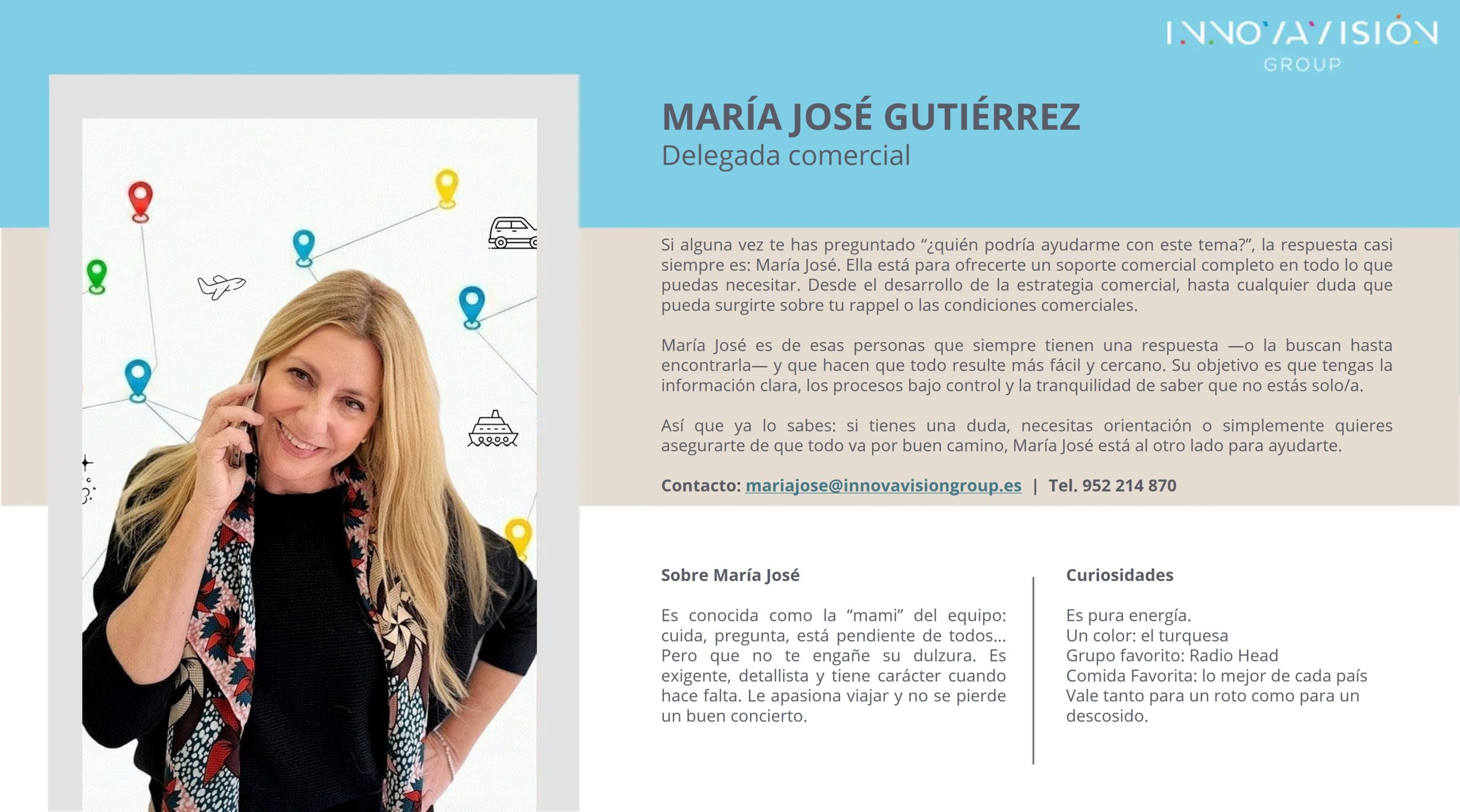 Si alguna vez te has preguntado quién podría ayudarte con tus necesidades comerciales, María José Gutiérrez es la respuesta. Como Delegada Comercial, está aquí para ofrecerte soporte completo en todo lo relacionado con el desarrollo de tu estrategia comercial y cualquier duda que puedas tener sobre rappels o condiciones comerciales.